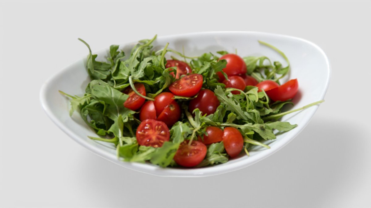 iceberg, rucola, lollo bianco, avocado, pomodori secchi, ceapă verde,măsline verzi, roșii cherry, caju, dressing muștar și sos soia 350g