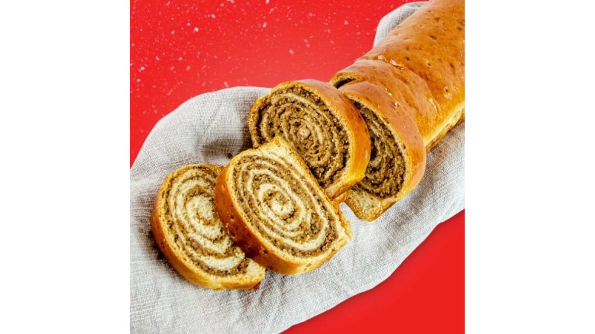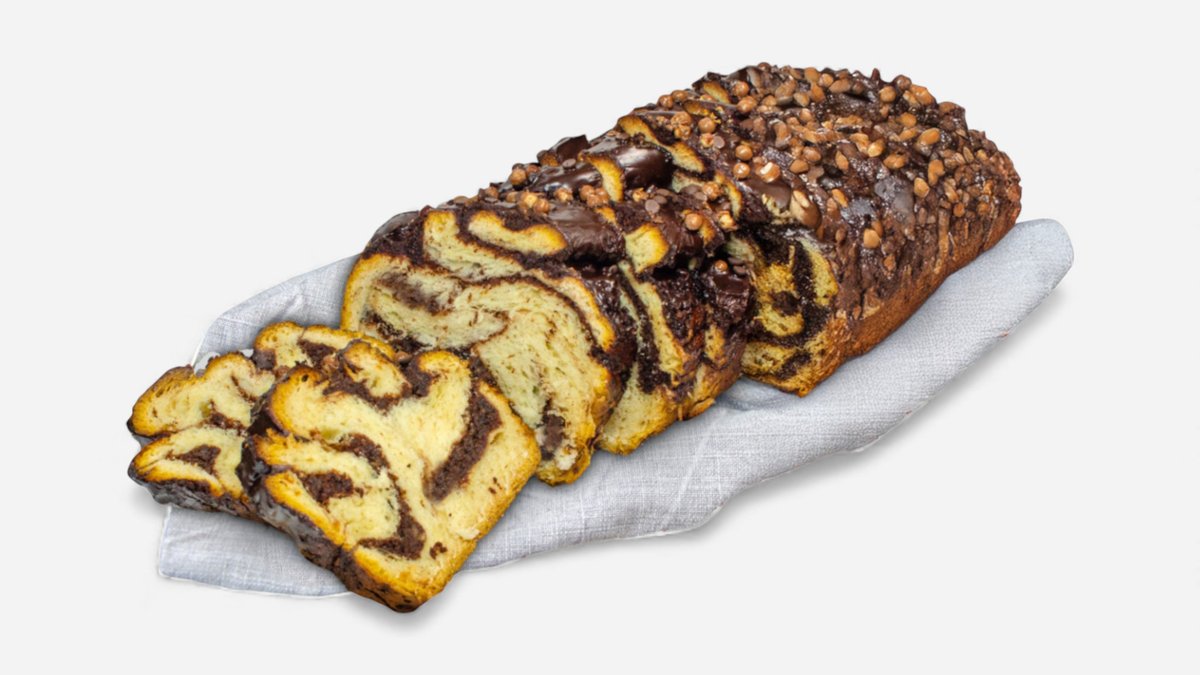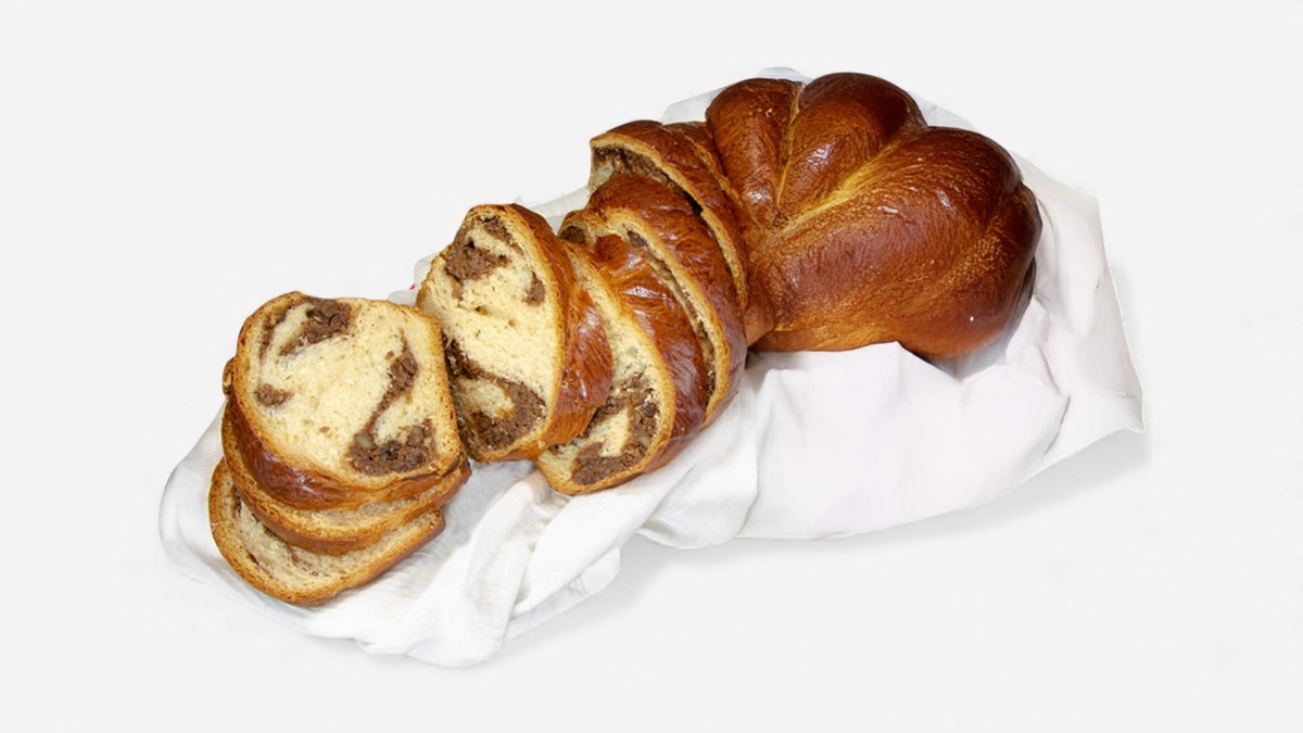 Maestri nostri patiseri invart aluatul in aer pana cand umplutura de cacao si nuca se amesteca asa frumos cu aluatul cu maia. Iar la final, cand e abia scos din cuptor si inca aburind, se toarna deasupra lui un sirop cu miere si lamaie, de te face sa zbori de placere. 1kg