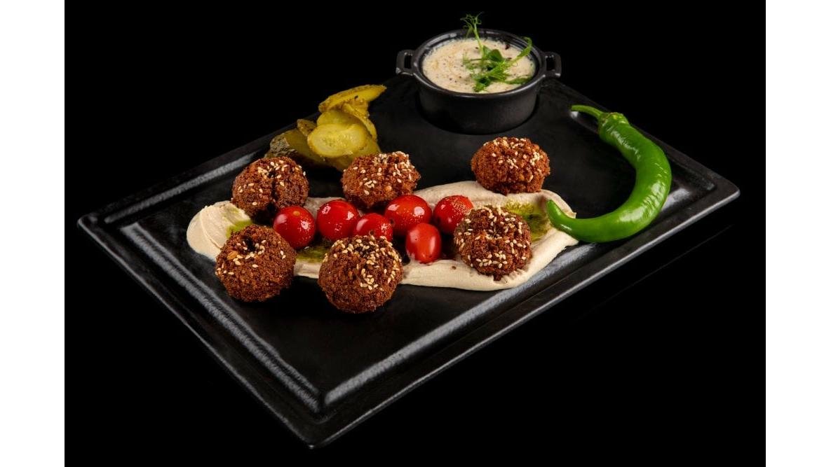 Midii, creveti, tentacule calamar, file de Sea Bass, dressing, cartofi prajiti, patrunjel, paine prajita