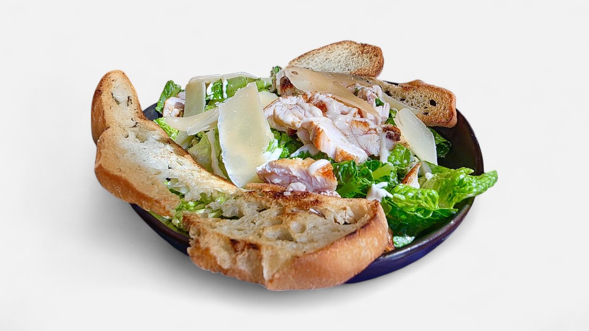 Romaine salad, original Caesar dressing, parmesan scally, with choice of grilled chicken breast and croutons. Extra, you can add grilled salmon or pan fried shrimps (69 lei). Salata romaine, sosul original Caesar, scalii din parmezan si crutoane. Se poate adauga somon la gratar sau creveti prajiti (69lei). 400g