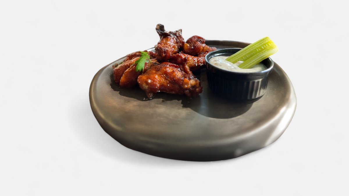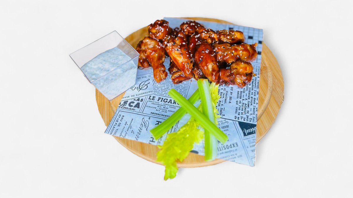 Aripioare BBQ afumate, lipicioase, servite cu sos ranch cremos. 350g