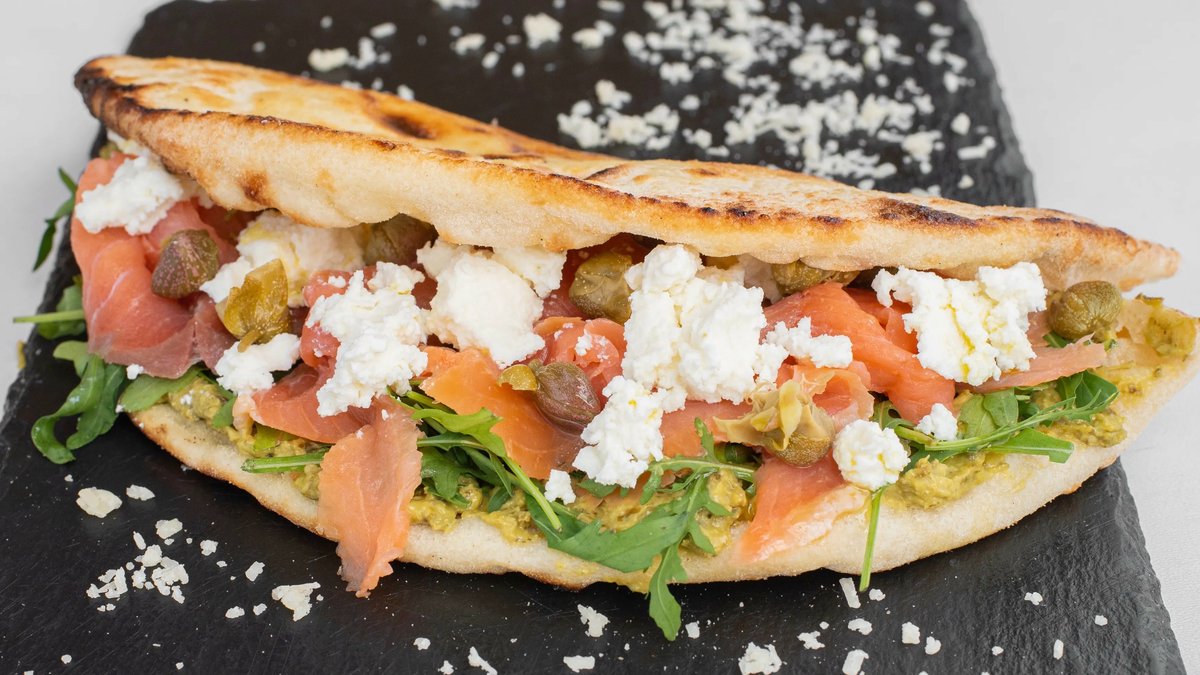 Somon BestSmoke, ricotta Ambrosi, capere FranzJosef, sos pesto Divella, rucola, ulei de măsline extravirgin - 310 g