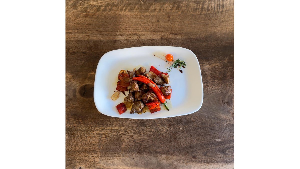 Muşchi de vită, ceapă, usturoi, ardei iute, parmezan, dovlecel