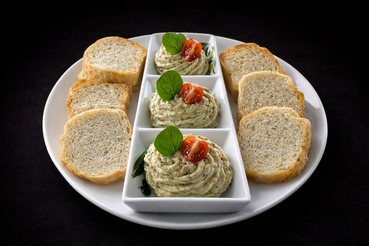 Vinete coapte, ceapă albă, maioneza, usturoi, ulei, pâine prăjită - 280g