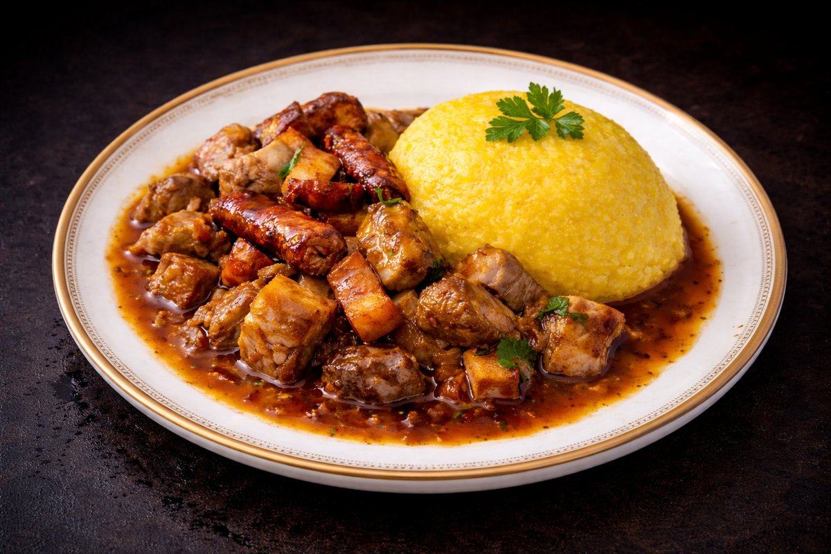 Carne de porc, cârnați, bacon, mămăligă - 350g