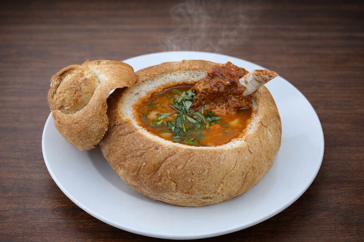 Ciorbă de fasole cu afumătură în pâine