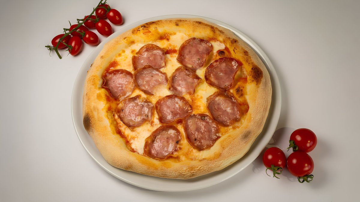 Sos roșii, mozarella, salam, prosciutto cotto, salam picant, guanciale, cârnați - 1250 g