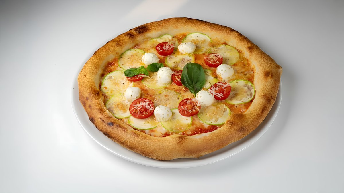 Sos roșii, mozarella, zuchinni, roșii cherry, boconccini, parmezan - 440 g