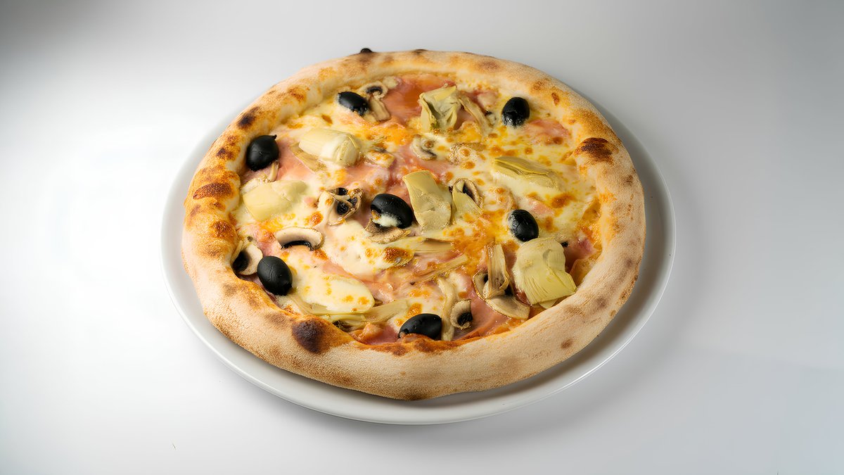 Sos roșii, mozarella, prosciutto ciuperci, carciofi - 1250 g