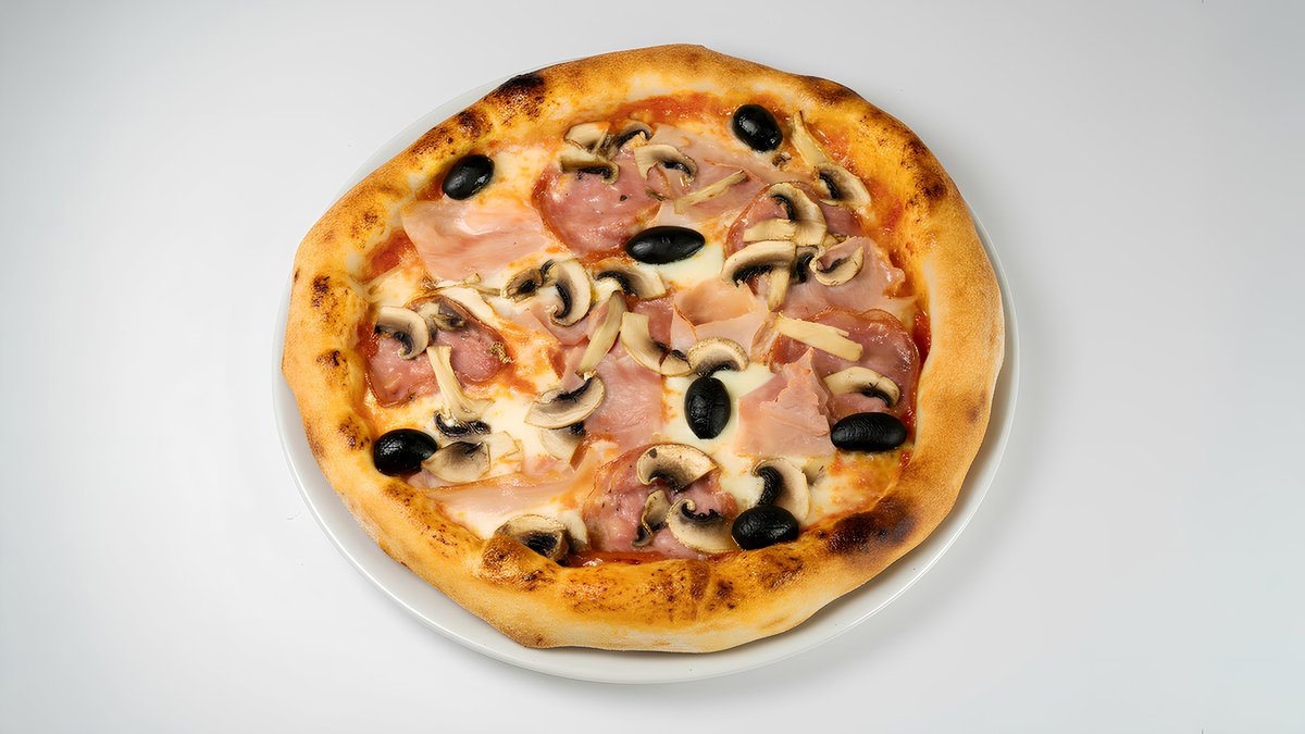 Sos roșii, mozarella, salam, prosciuto cotto, ciuperci, măsline - 450 g