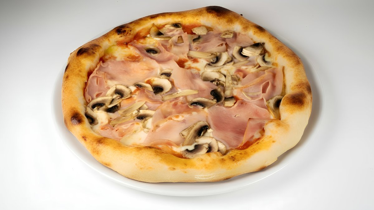 Sos roșii, mozarella, prosciuto cotto, ciuperci - 450 g