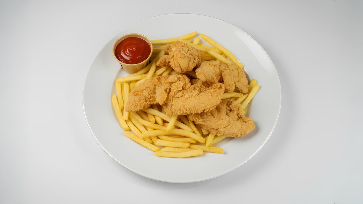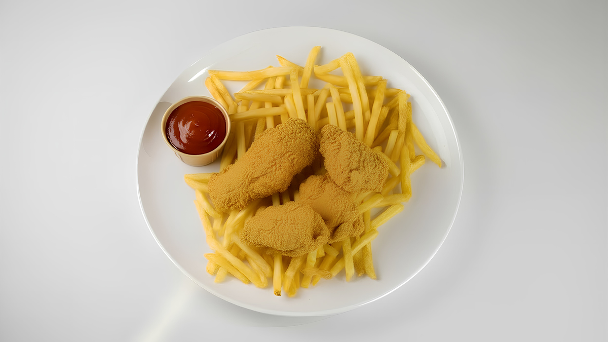 5 buc. muschiuleț pui (300 g) în crustă crocantă, mix condimente, porție mare cartofi (150 g), 1 sos la alegere - 450 g