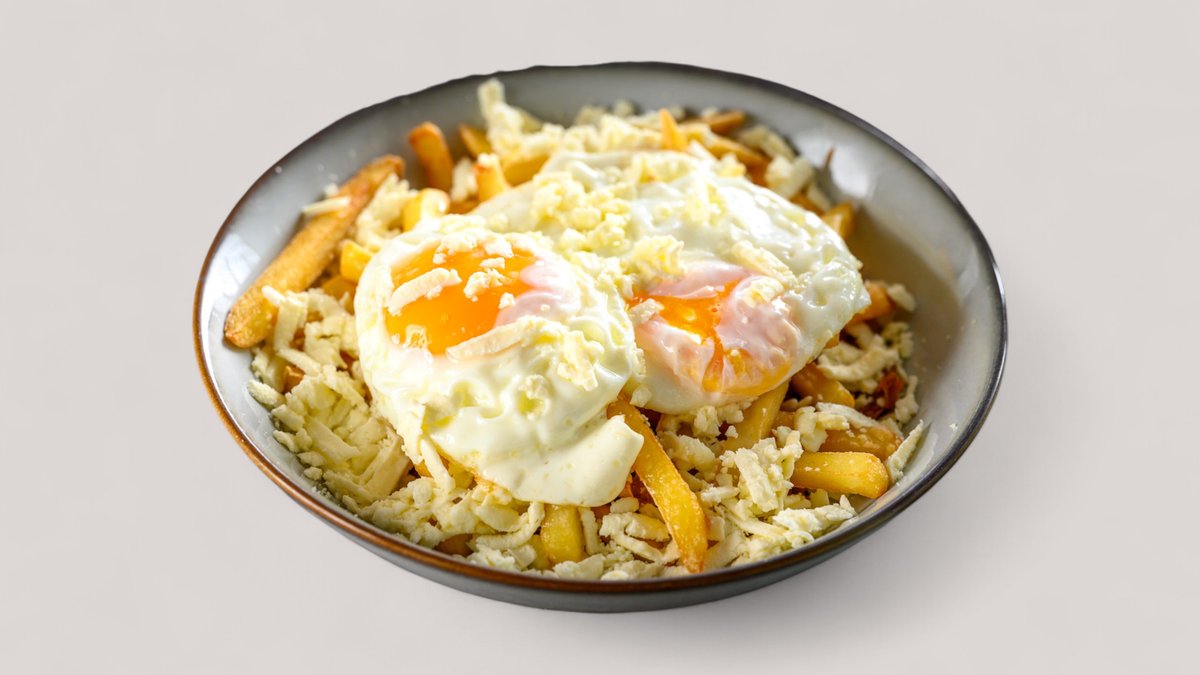 Ouă ochiuri, cartofi prăjiți, halloumi sticks, bacon, sos coco 400 g