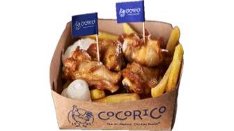 Cocobaked aripioare 200 g, cartofi prăjiți 150 g, sos de usturoi 30 g, bărcuță 1 buc