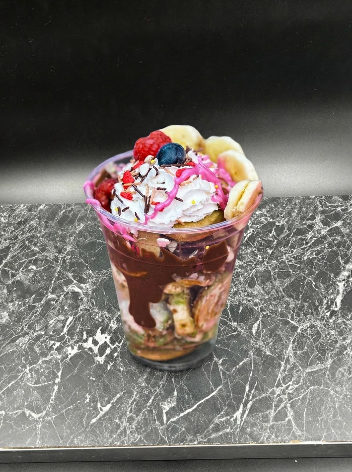 Nutella, ciocolată albă/neagră, căpșuni, banane, caramel, hazelnut, bubblegum, fistic, biscoff, gem vișine/căpșuni - 250g