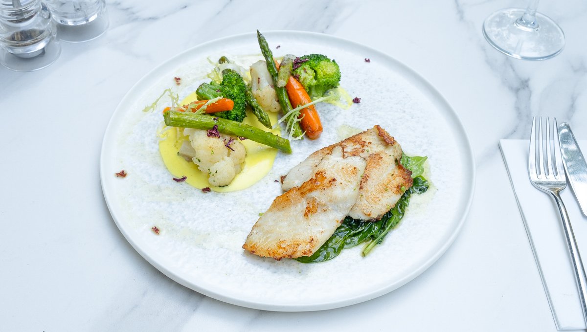 Calcan (250g, congelat), Conopidă (80g), Broccoli (80g), Sparanghel (40g), Baby morcov (30g), Baby spanac (10g), Smântână lichidă 35% 10g (Lapte de vacă gras, pasteurizat), Unt 82% grăsime 5g (Lapte pasteurizat 0.1% Natura), Usturoi (3g), Busuioc verde (2g)
