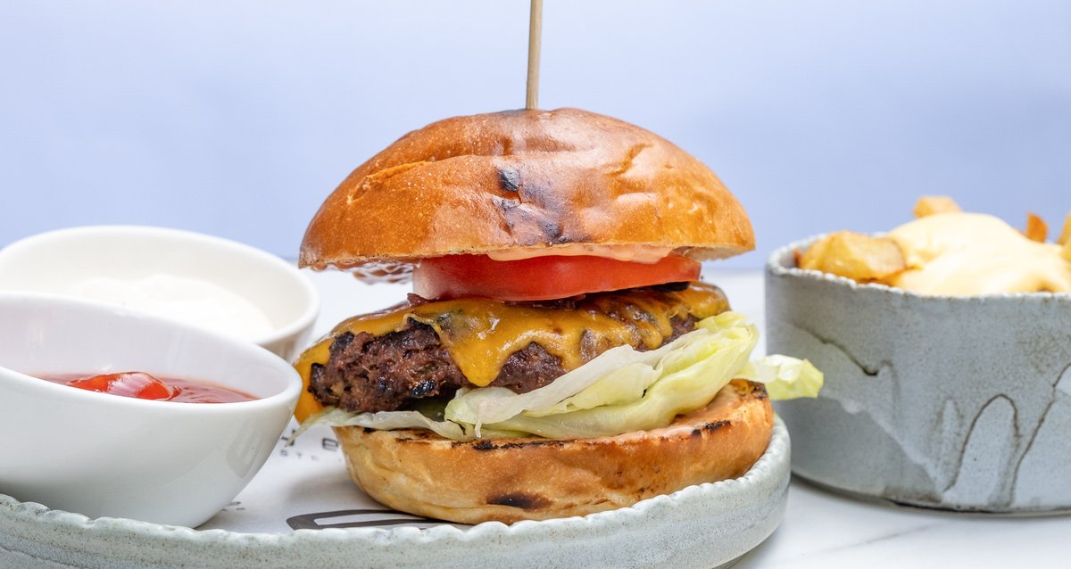 Cartofi (350g), Carne tocată vită (180g, congelat), Ceapă (80g), Murături (80g), Ketchup 80g (Zahăr, Oțet, Roșii, Sare), Sos de maioneză 80g (Zahăr, Oțet, Gălbenuș de ou, Lămâie, Sare), Cheddar 70g (Lapte pasteurizat 0.1% Natura, Sare), Roșii (60g), Salată verde (20g), Vin (10g), Sare (5g), Piper măcinat (3g)