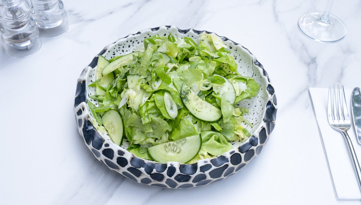 Salată verde (250g), Castraveți (50g), Mărar (10g), Ceapă verde (8g), Ulei (5g) - Poza produsului este cu caracter informativ.