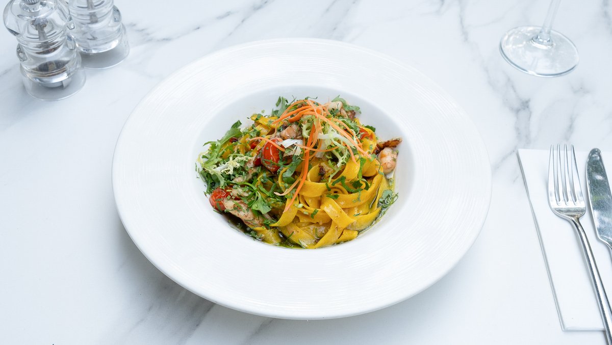 Tagliatelle cu fructe de mare și pesto