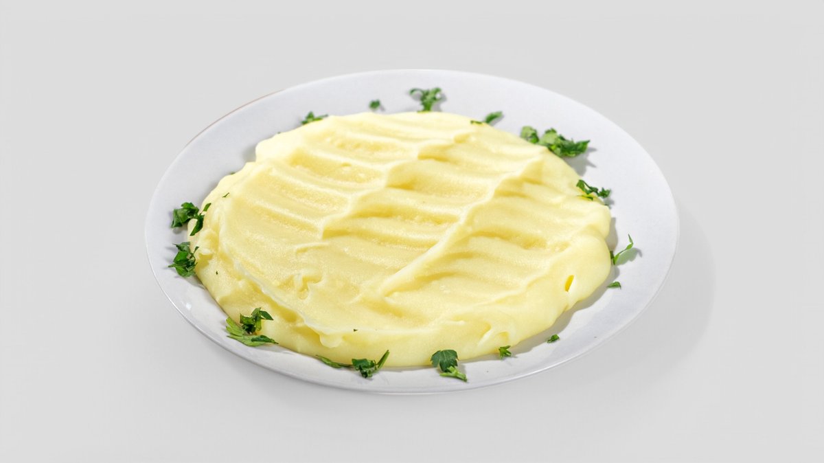 Cartofi (250g), Smântână 24% grăsime 70g (Lapte de vacă gras, pasteurizat), Unt 82% grăsime 50g (Lapte pasteurizat 0.1% Natura) Poza produsului este cu caracter informativ.