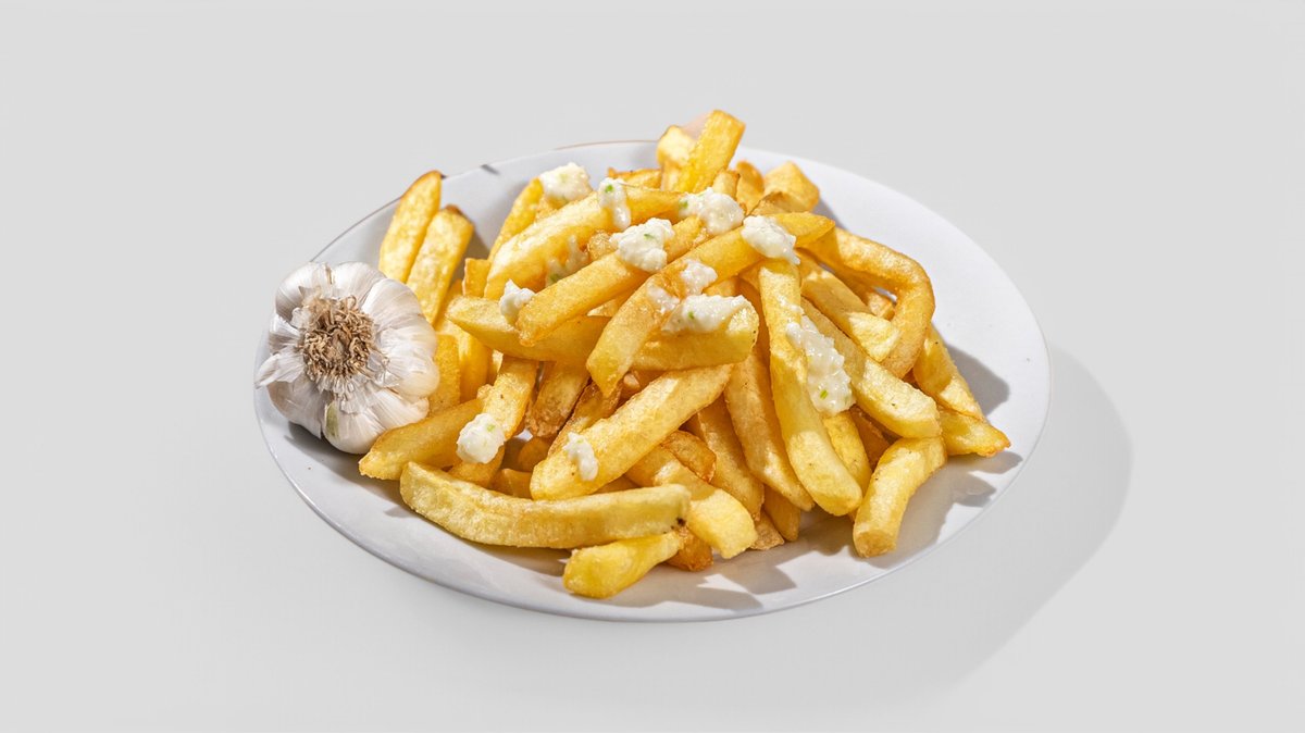 Cartofi (450g), Midii (100g, congelat), Calamar (100g, congelat), Creveți (100g, congelat), Ulei (100g), Sos de maioneză 80g (Zahăr, Oțet, Gălbenuș de ou, Lămâie, Ulei de rapiță, Sare), Sos sweet chilli 80g (Zahăr, Usturoi, Sos cu chilli, Ardei iute, Sare), Făină (70g), Hamsie (50g, congelat), Parmezan 50g (Lapte de vacă 3%, Sare), Ulei de susan 10g (Semințe susan), Sos Sriracha 10g (Zahăr, Usturoi, Chili pudră, Sare), Sare (5g)