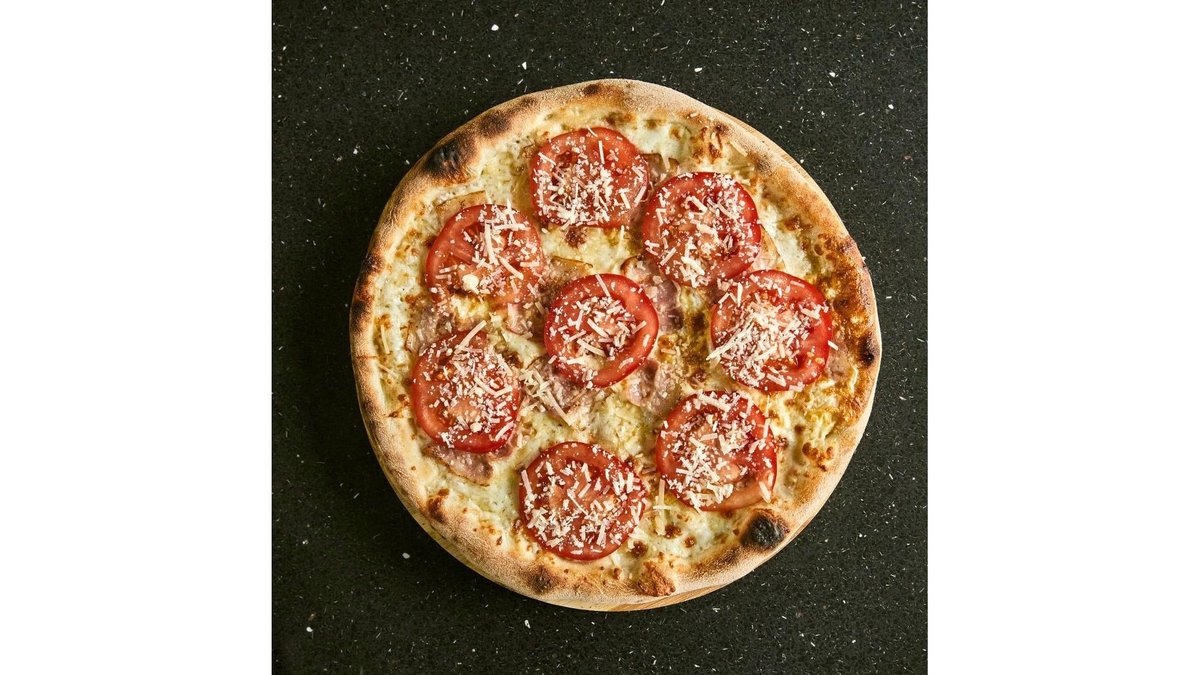 Sos alb, gorgonzola,bacon, felii de roșii,parmezan