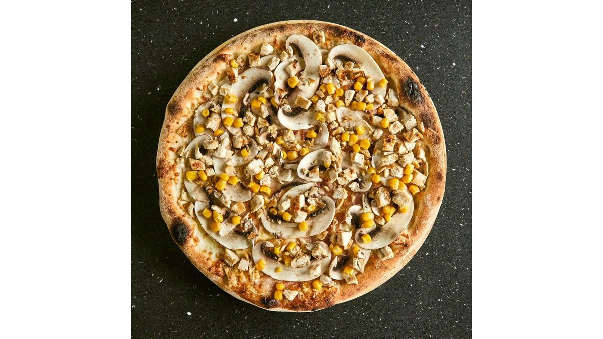Sos alb, mozzarella, pui, porumb,ciuperci