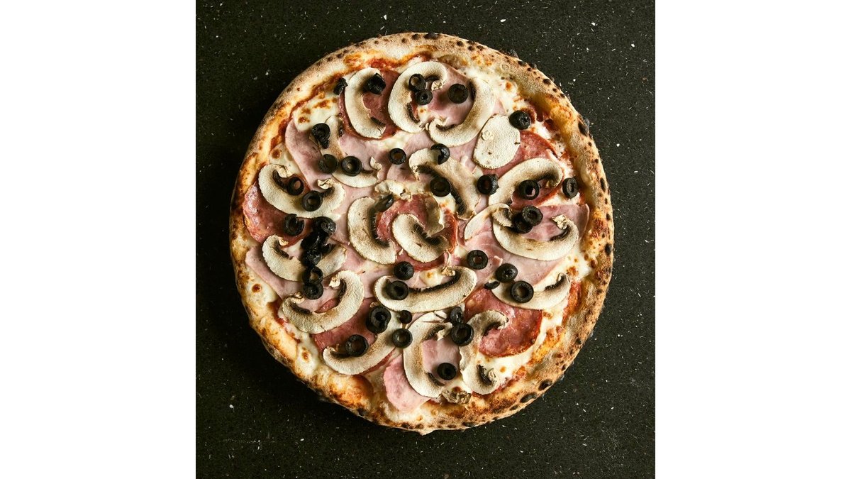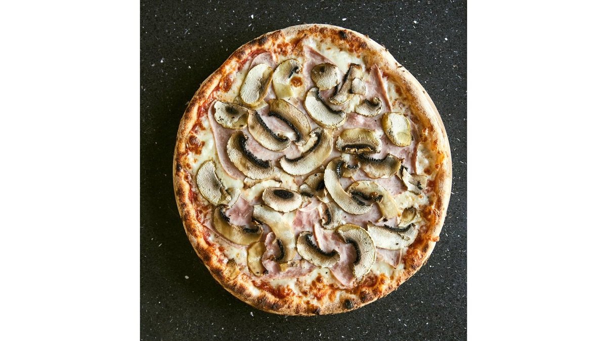 Sos de roșii san marzano, mozzarella,prosciutto cotto, ciuperci,ulei de măsline