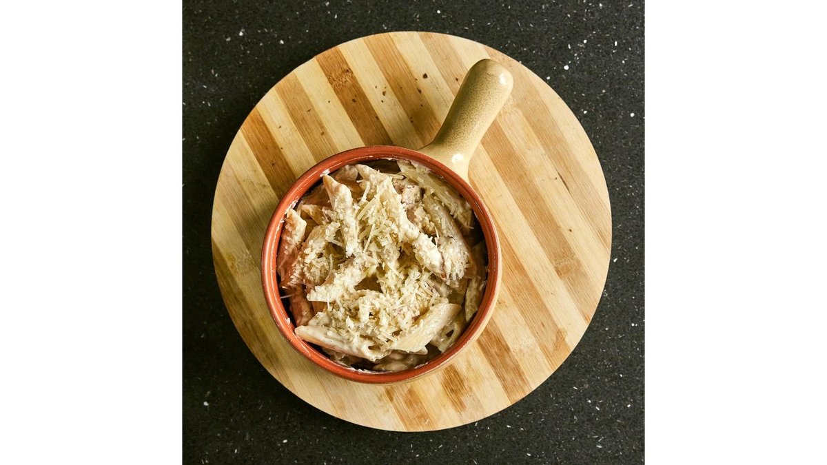 Penne ,pui,ciuperci,bacon,sos de roșii,mozzarella