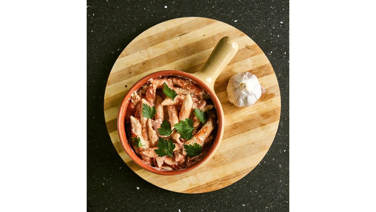 Penne ,usturoi,peperoncino,sos de roșii,pătrunjel, ulei de măsline