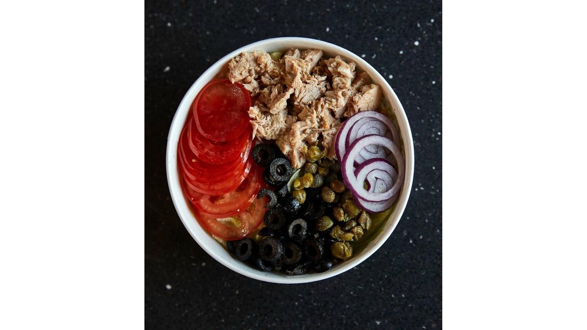 Salată iceberg ,ton, ceapă roșie,măsline,capere,roșii , focaccia