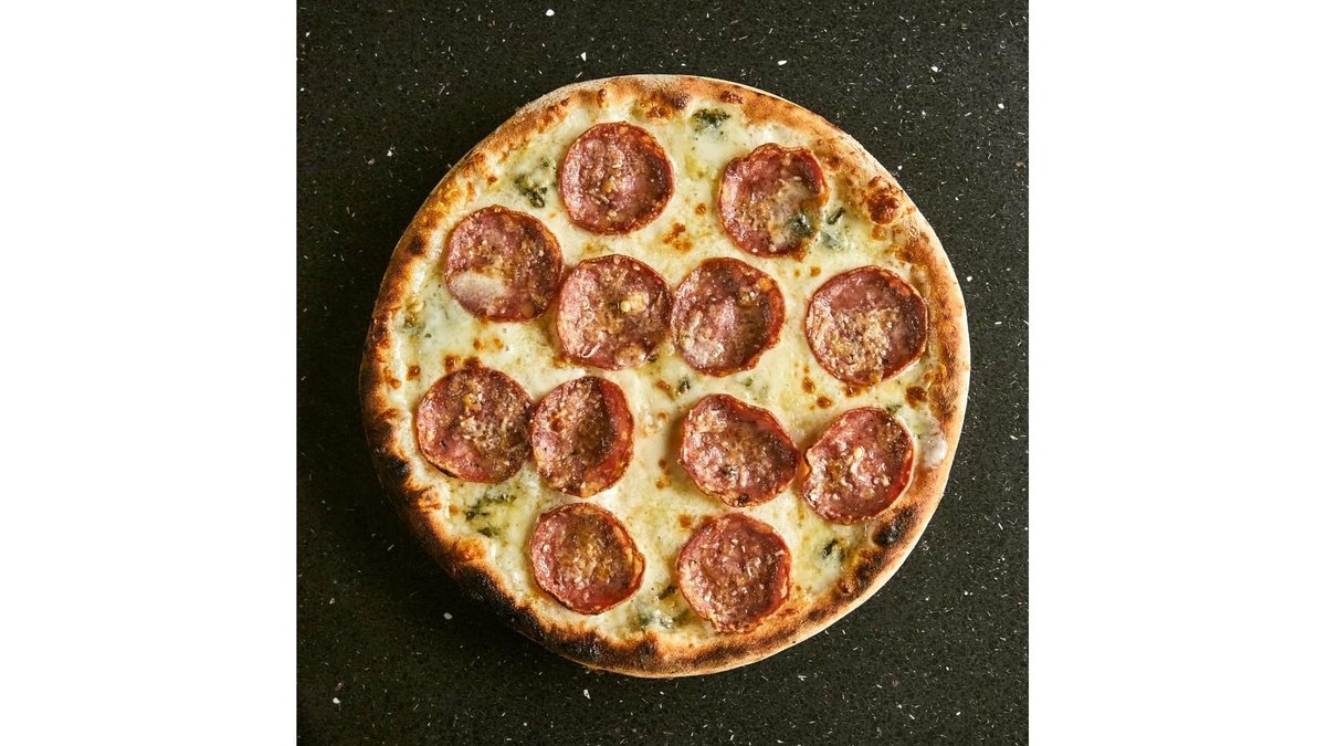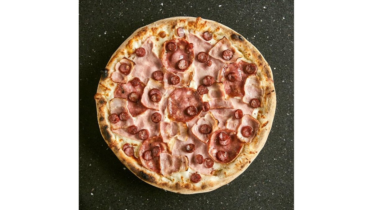 Sos de roșii san marzano, mozzarella,cârnați,bacon, prosciutto cotto, salam
