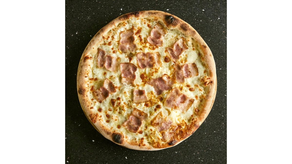 Sos alb , mozzarella, bacon, ou bătut , parmezan