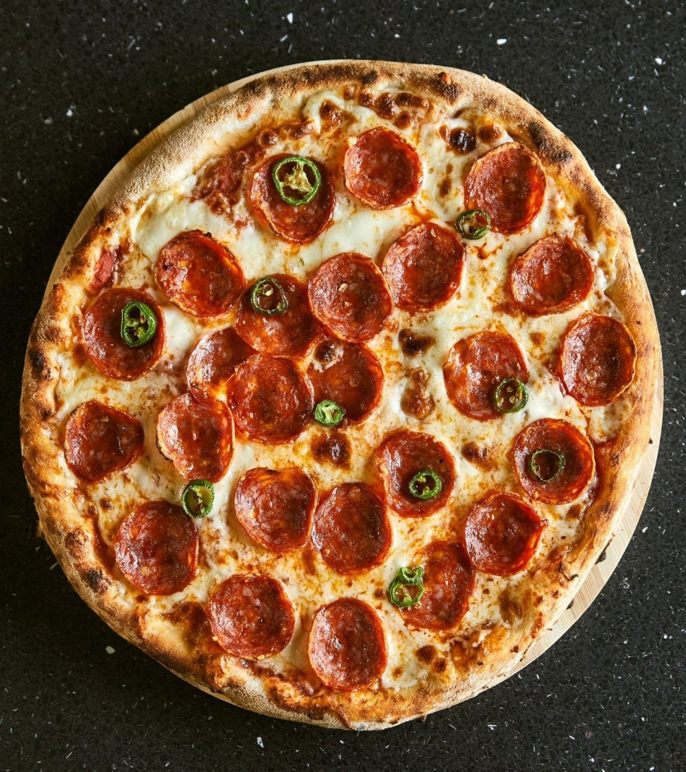 Sos de roșii san marzano, mozzarella,salam, ardei iute