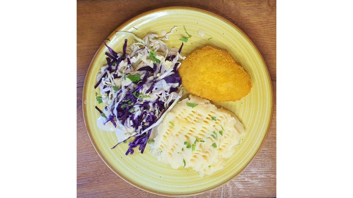 Șnițel vegan pe baza de soia, piure din cartofi si pastarnac, salata de varza, 350 gr