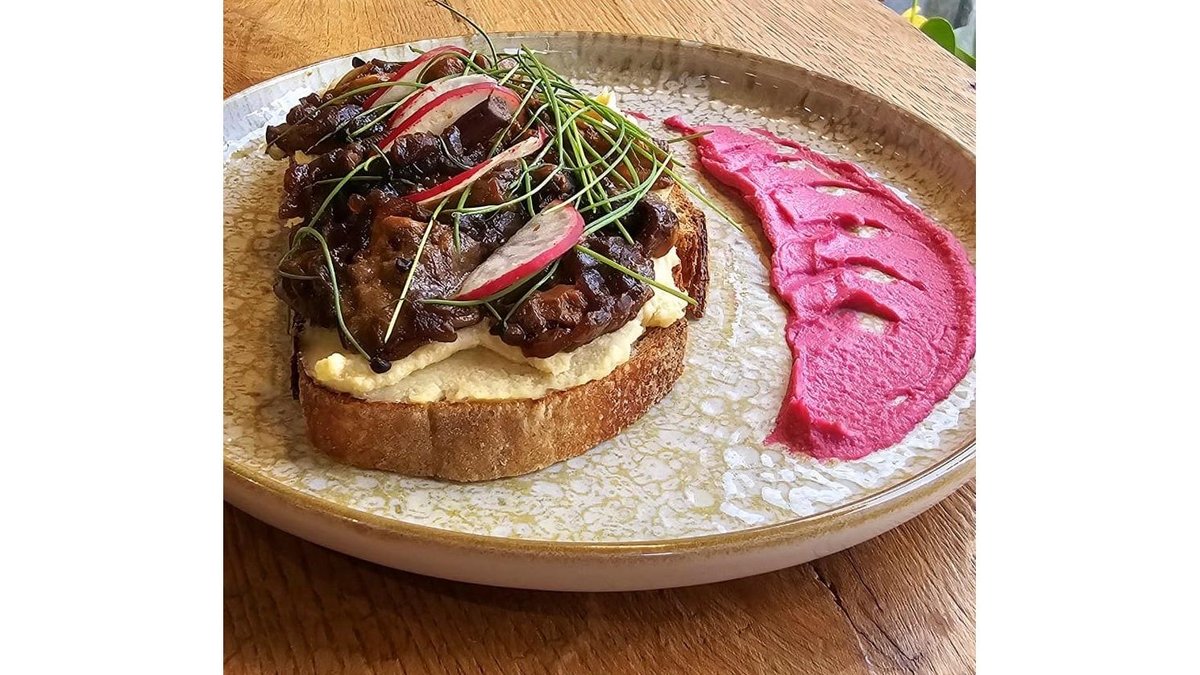 Toast cu hummus si mix de ciuperci - vegan