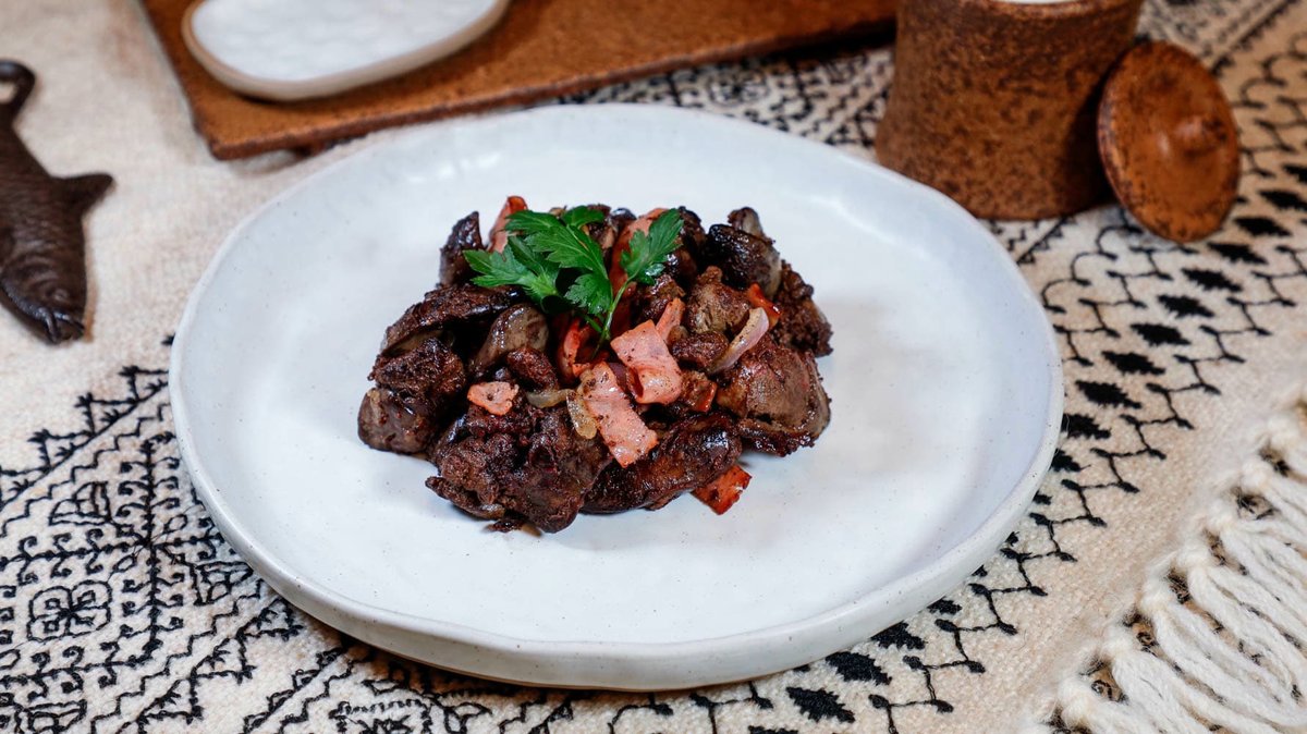Ficăței de pui la tigaie cu vin alb și ceapă roșie