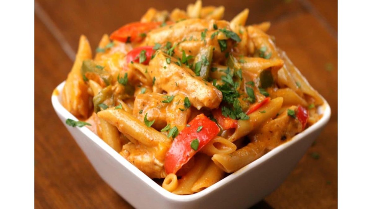 Paste penne fără gluten cu sos alb , piept de pui și parmezan