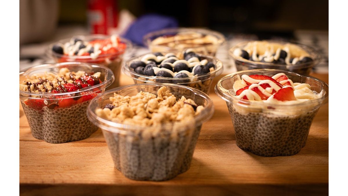 Budinca de chia cu musli crunch (budinca de chia cu lapte de migdale, miere si granola)