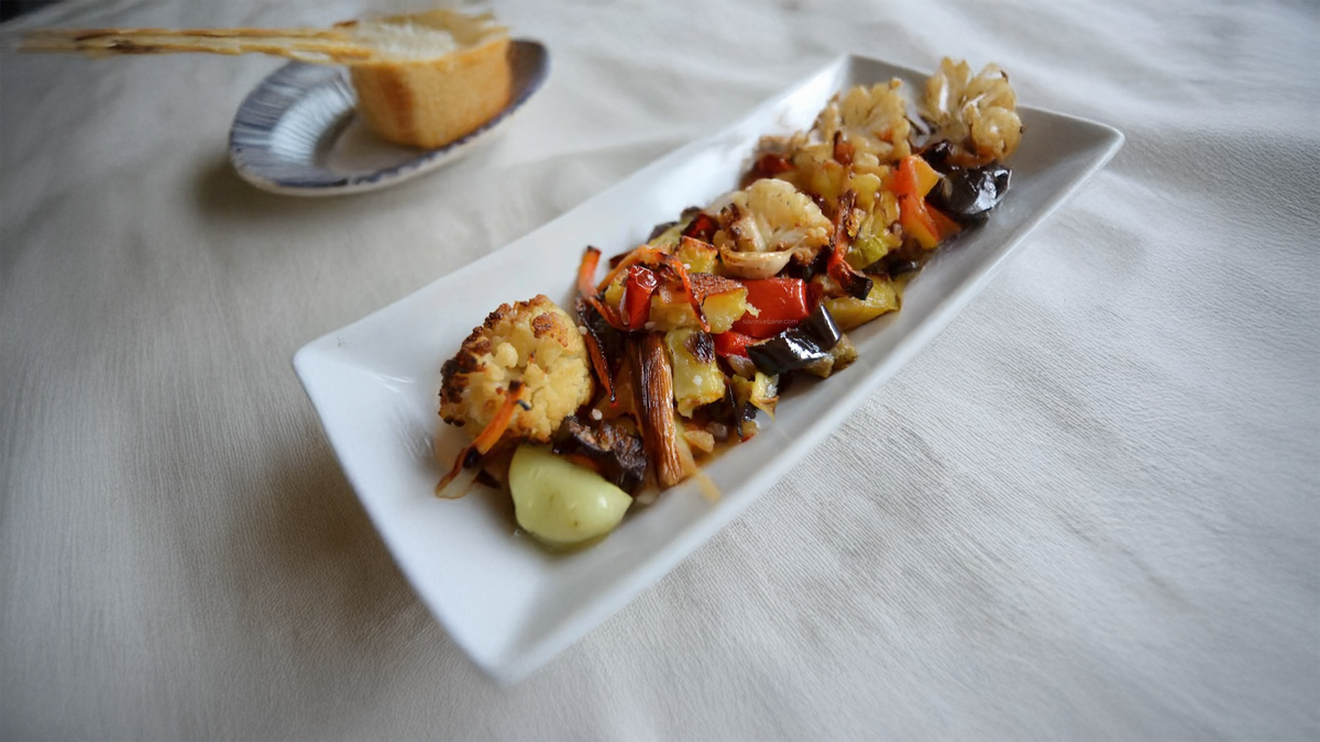 Cartofi dulci la cuptor, aromați cu rozmarin și ghimbir proaspăt.