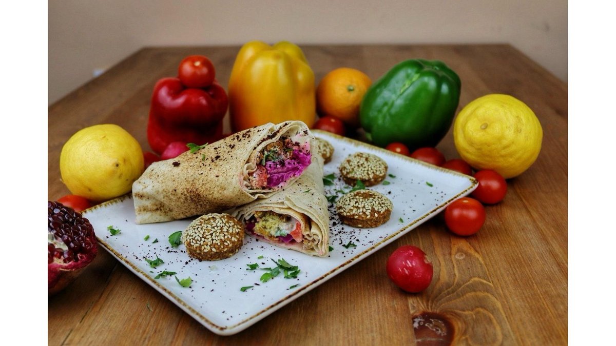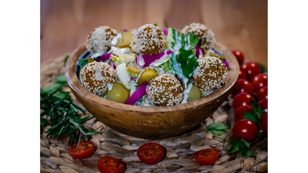 Falafel, hummus, patrunjel, sos de susan, salate, muraturi 3 buc.