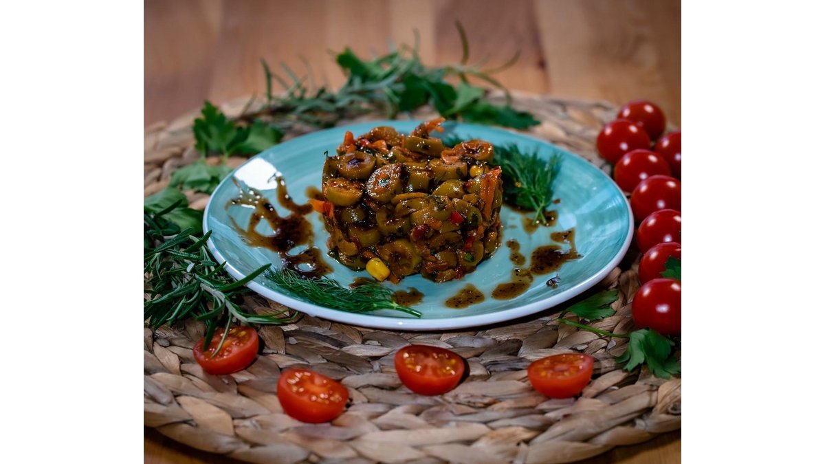 Masline verzi, porumb, ardei gras asortat, pasta de ardei, sos rodii, marar