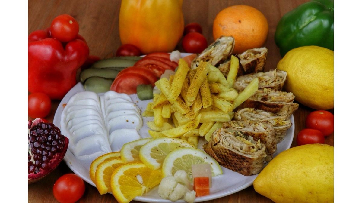Carne vita, legume la grata, garnitura(cartofi sau orez), salata la gratar