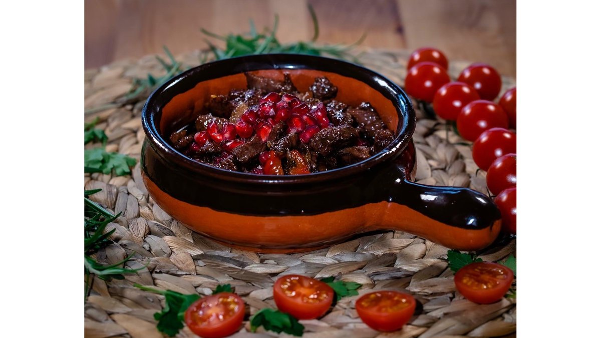 Carne berbecut la tigaie, ardei capia, ceapa, usturoi, sos de rodie