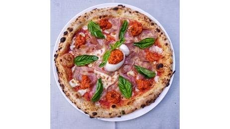 Sos de rosii San Marzano, mozzarella, burrata, prosciutto crudo, busuioc 450 g