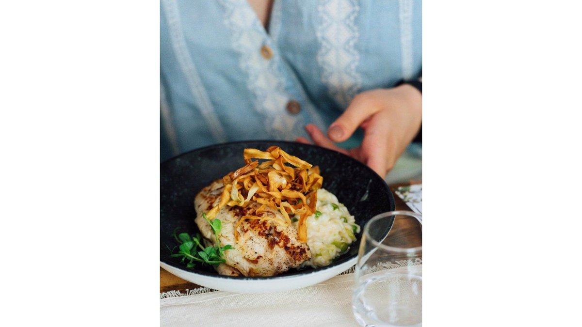 File de păstrăv pe grătar, risotto cu mazăre și broccoli, chipsuri de păstârnac 370 g