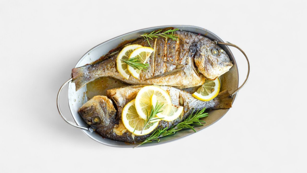 Pastrav la cuptor servit cu lamaie si Legume la grill