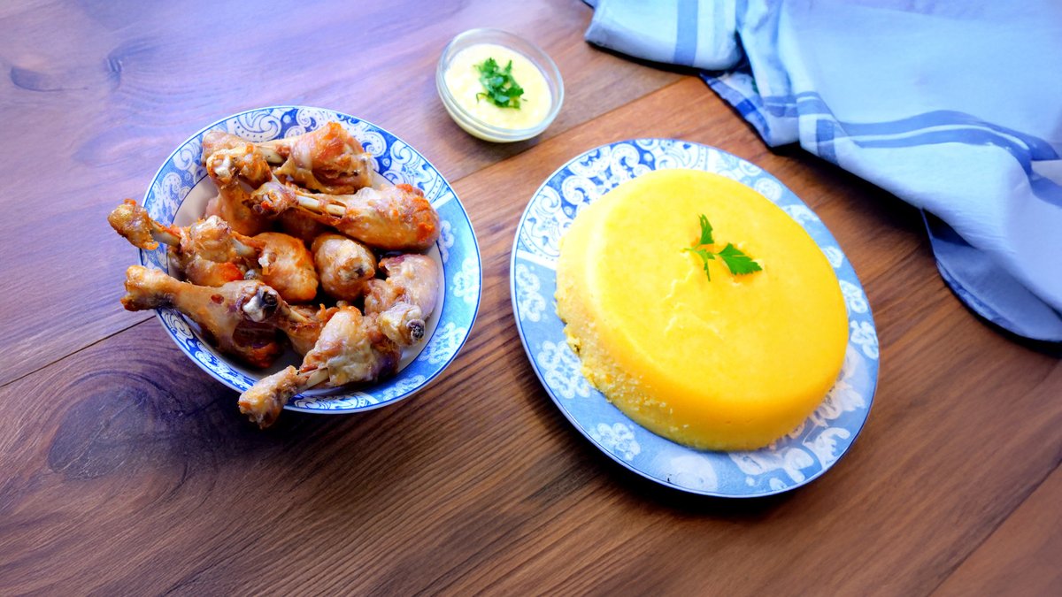 Supa crema sau ciorba+ pui la ceaun cu mamaliga si mujdei de usturoi