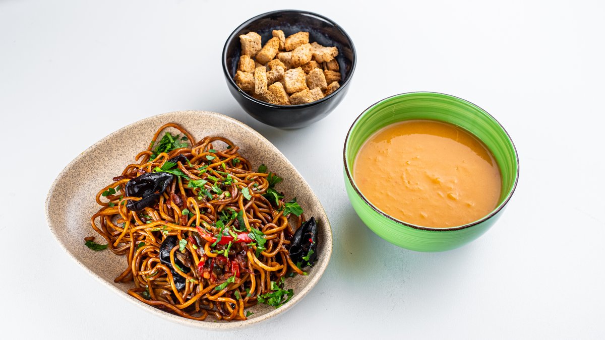 Supa crema de rosii cu taitei+Noodles cu urechi de lemn