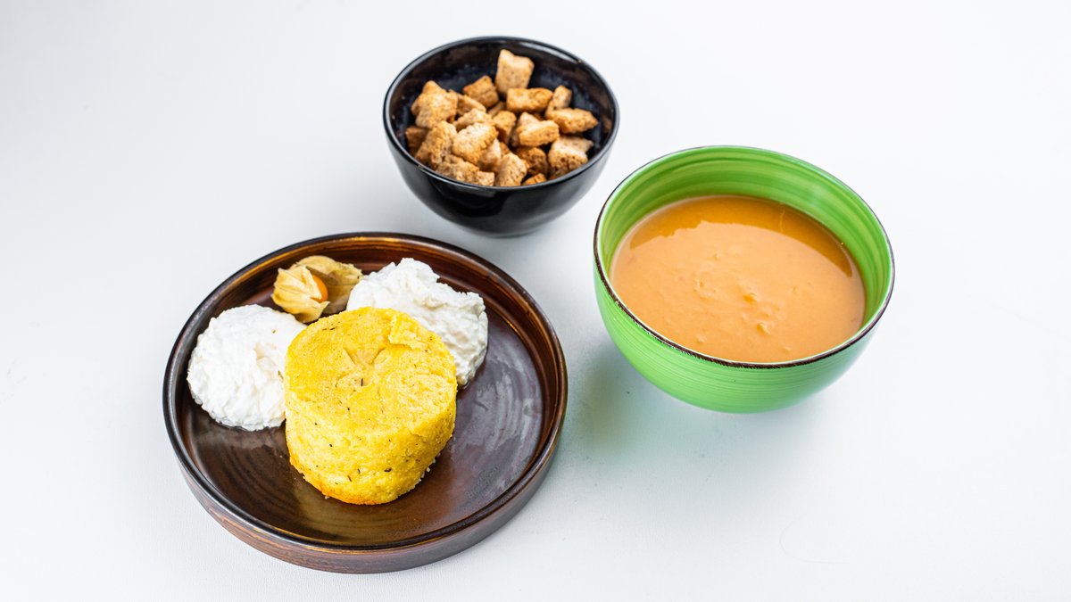 Supa crema sau Ciorba+Chiftele marinate+Piure de Cartofi